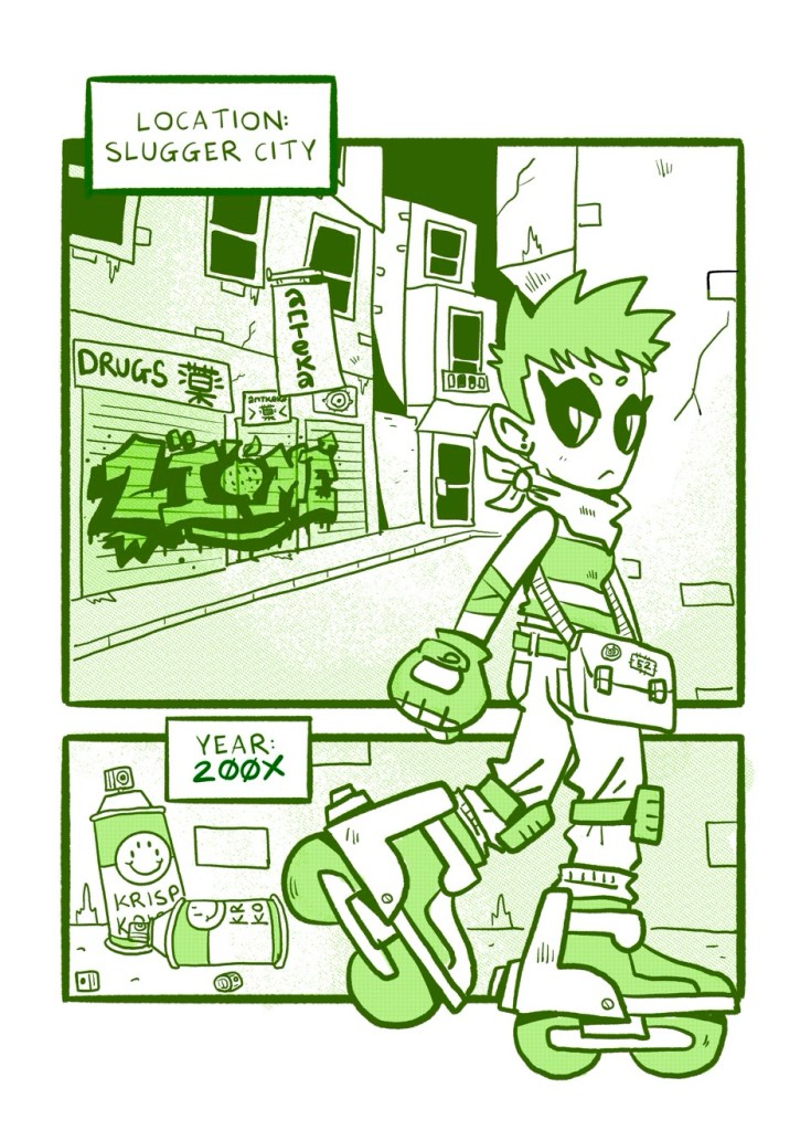 My thought process for this comic was basically just “what if I made a comic that was a love letter to Jet Set Radio” I’ve had it on the back burner for years but something arose that gave the chance to finally see it though.