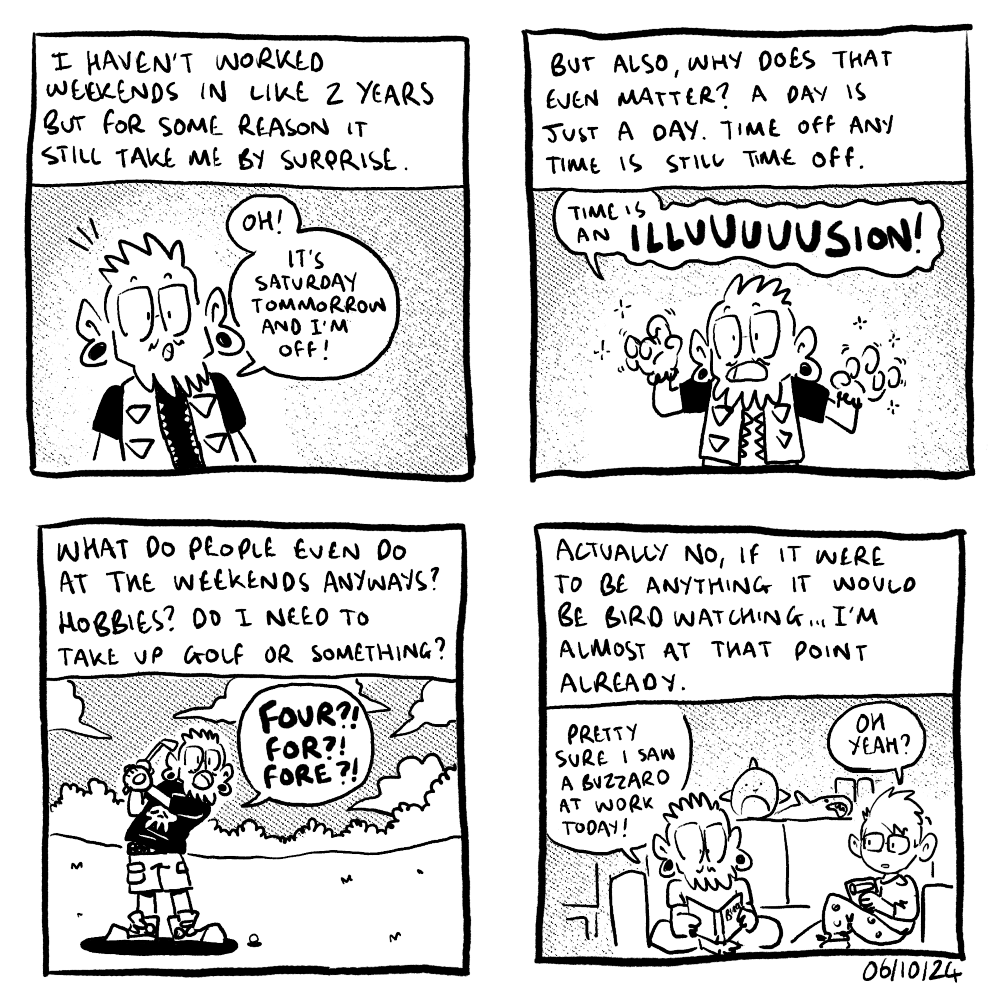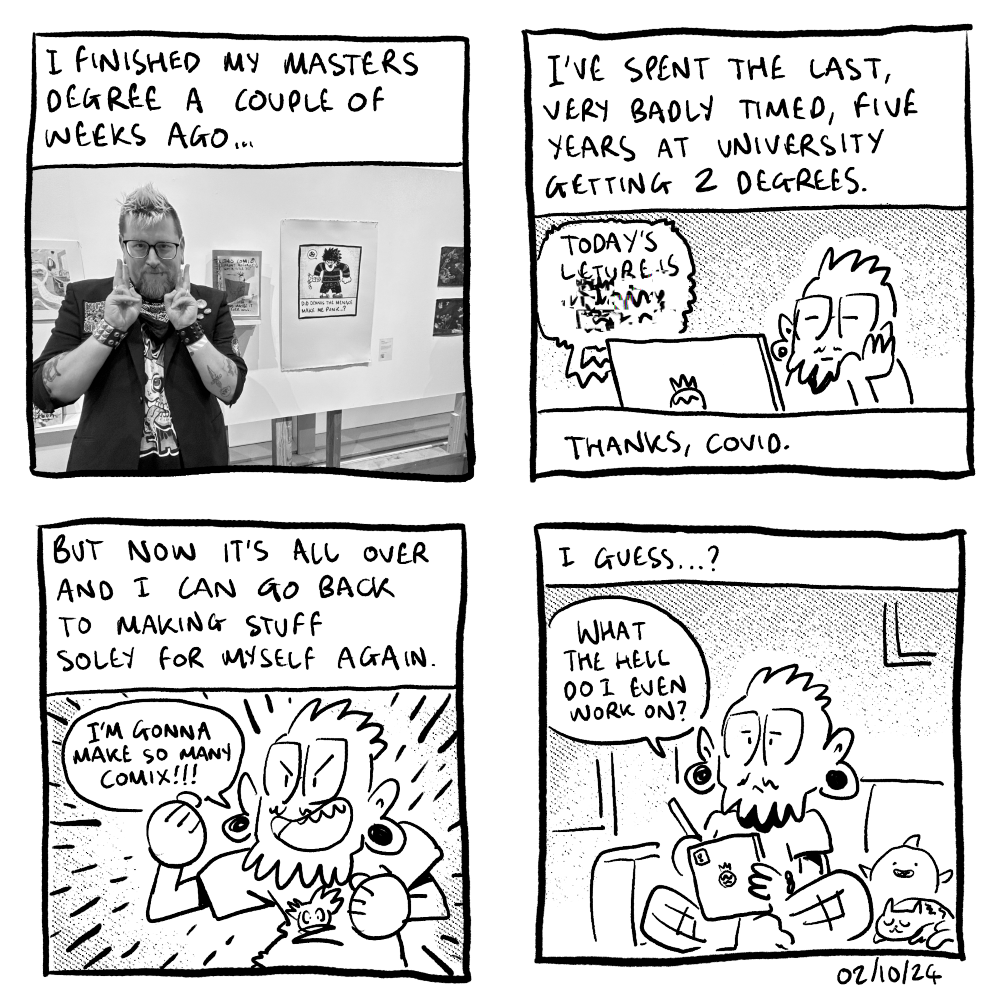 As part of my MA I’m working on a graphic novel that will consist of various vignettes of the characters featured in the comic above.