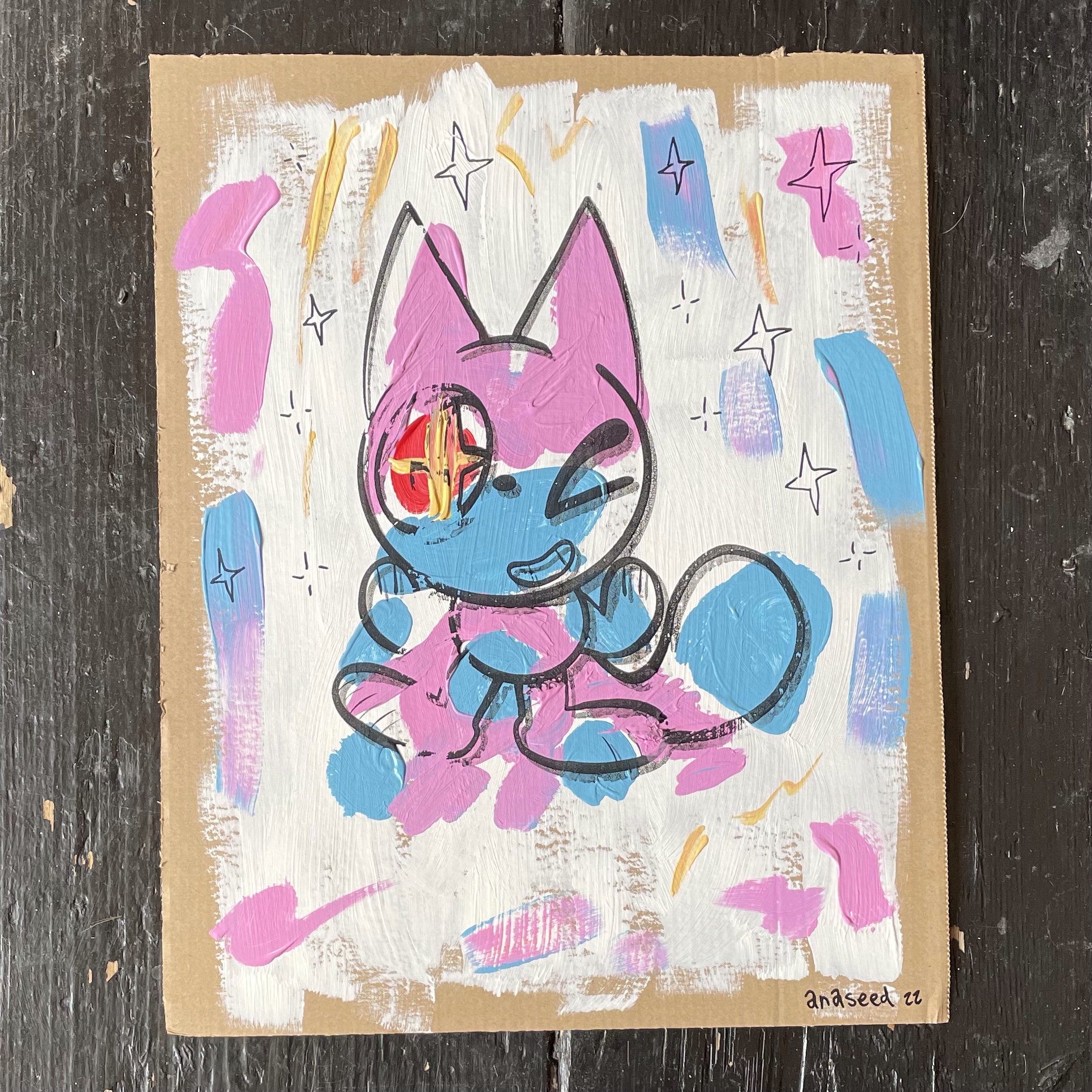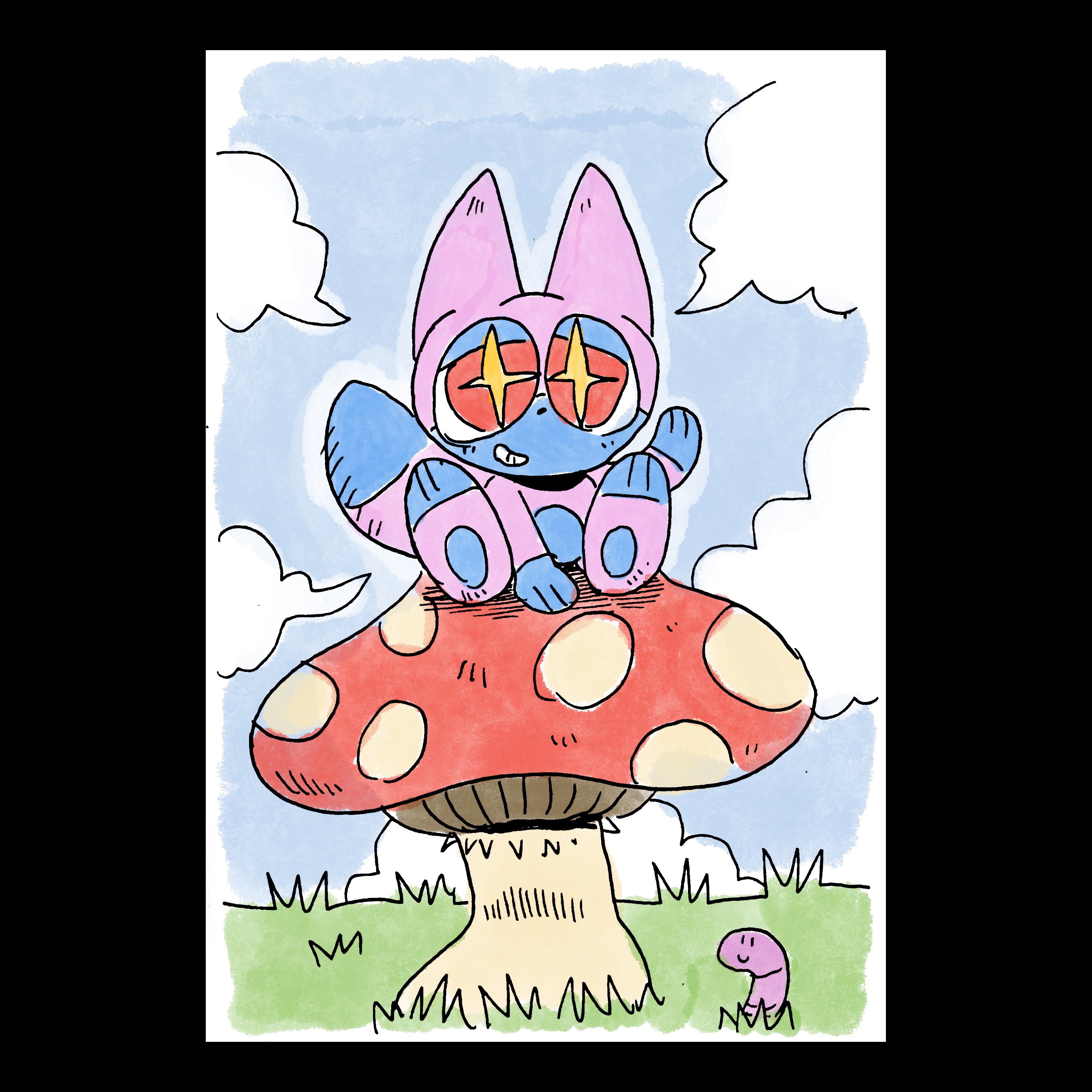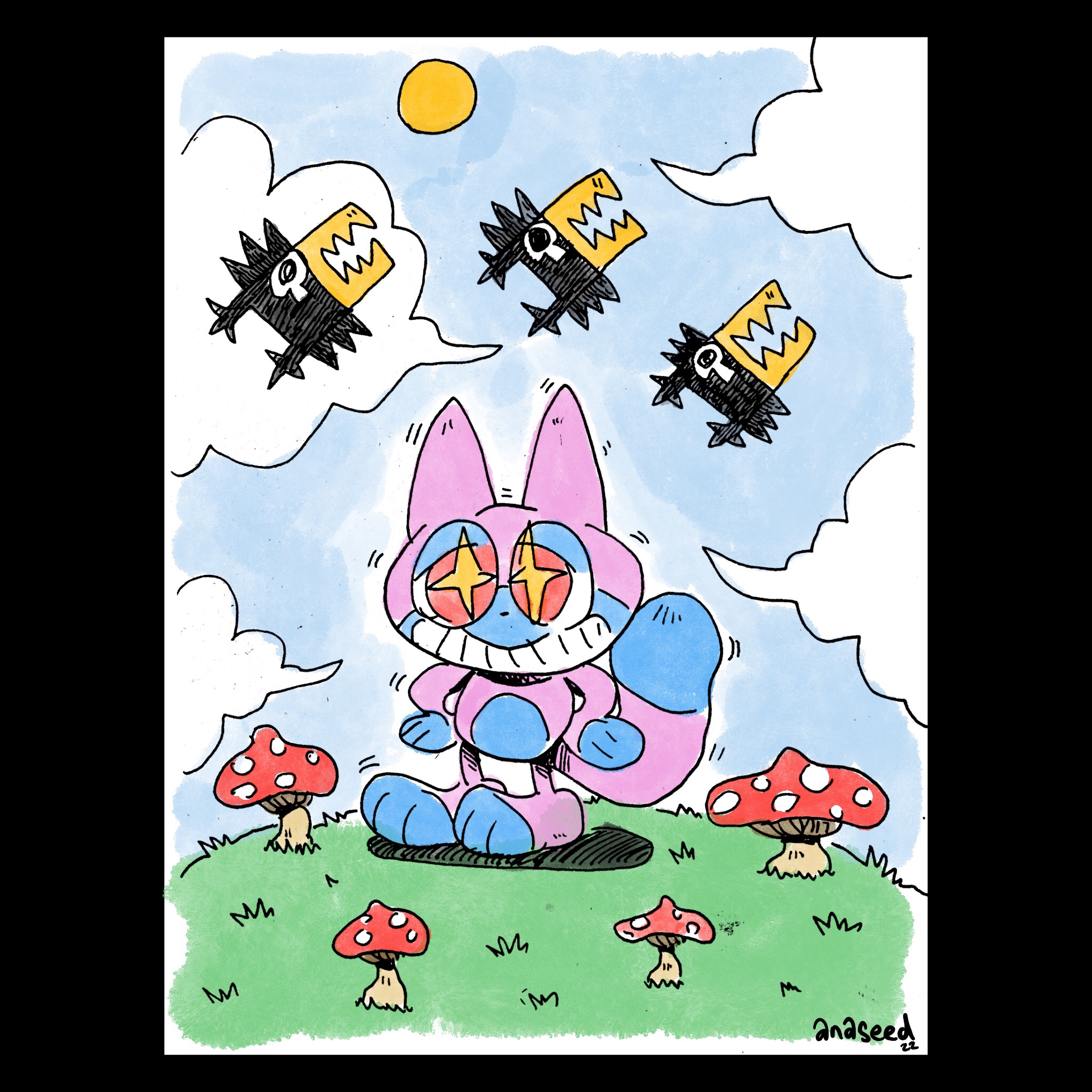 Snot & Dog was an idea I came with through a character design workshop. The idea was, you drew an object over and over again, simplifying it and making it easier to draw until you could eventually get a shape to create a character from. Snot was originally a chair would you believe. Then I just gave home a dog so he’d have someone to bounce off of.
